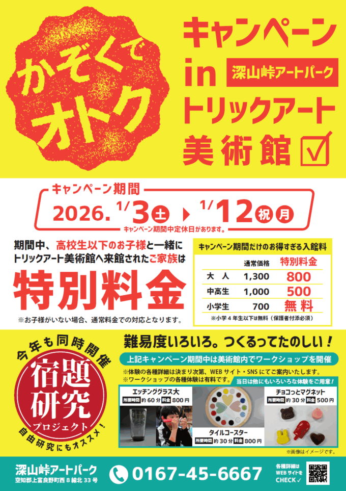 トリックアート美術館では、お子様の好奇心を刺激するお得なキャンペーンと、冬休みの学